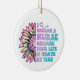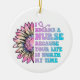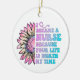 Bonito ornamento cerâmico de design com uma flor grande e texto multicores em tons de lavanda e azul que diz Eu me tornei enfermeira porque sua vida vale o meu tempo!