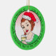 A retro-dama desenhada com uma taça de vinho branco, Enfeites de natal de humor de vinho para um amigo.