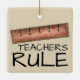 O design de ornamento apresenta uma ilustração original de uma régua de madeira, com TEACHERS RULE em letra divertida. Um presente de excelente para o seu professor favorito. Não vê o que está procurando? Precisa de ajuda para a personalização? Clique em "contate este designer" para criar algo apenas para você!