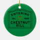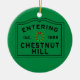 Os feriados de Natal em Nova Inglaterra não estariam completos sem um enfeite festivo "Entrando em Chestnut Hill" nas árvores de Natal. Excelente de presente para alguém que vive na cidade de Newton MÃE, ou no bairro de Chestnut Hill. Dê um aos seus pais, avós, recém-casados, bem-vindos ao bairro, dando-lhe um nome. Comprar um para todos na sua lista de presentes de Natal.