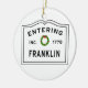 Os feriados de Natal na Nova Inglaterra não estariam completos sem um ornamento festivo de "Entrando em Franklin". Excelente de presente para alguém que vive na cidade de Franklin MÃE, ou um bairro de Franklin. Dê um aos seus pais, avós, recém-casados, bem-vindos ao bairro, dando-lhe um nome. Comprar um para todos na sua lista de presentes de Natal.