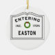 Os feriados de Natal na Nova Inglaterra não estariam completos sem um ornamento festivo "Entrando no Easton". Excelente de presente para alguém que vive na cidade de Easton MÃE, ou um bairro de Easton. Dê um aos seus pais, avós, recém-casados, bem-vindos ao bairro, dando-lhe um nome. Comprar um para todos na sua lista de presentes de Natal.