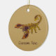 Ícone Scorpion. Imagem inspirada por design de nó celta. Cor de fundo personalizada. Texto personalizado de ambos os lados.