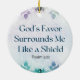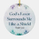 A proteção de Deus não é apenas uma promessa — é pessoal." Este adorno elegante apresenta a poderosa escritura do Salm 5:12: "O favor de Deus me rodeia como um escudo." Este ornamento torna-se um lembrete muito significativo da proteção divina e do favor. Esteja você comemorando uma nova temporada, oferecendo encorajamento, ou simplesmente lembrando a alguém que eles estão cobertos pela graça — esse ornamento faz a fé se sentir próxima e pessoal