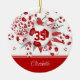Ornamento De Cerâmica Esferas de futebol brancas vermelhas são personali