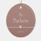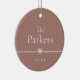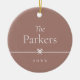 Um Enfeites de natal simples e doce apresenta um layout minimalista, com seu nome familiar e o ano em uma serifa limpa e clássica em um fundo teracotta de tom suave. Um pequeno arco através do centro completa a design. Adicione uma foto ao verso.