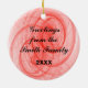 As espirais fractais vermelhas, fitas e estrelas completam um lado de um tradicional design de Natal vermelho e verde festivo neste ornamento redondo. Este design vermelho esboçou o texto verde "Feliz Natal" de um lado e você pode personalizar o lado oposto. Preencha os blocos de modelo com suas palavras para personalizar esse lado ou remover completamente o texto. Clique em "Personalizar!" para selecionar um estilo de fonte, cor e tamanho preferidos.