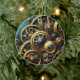 Dourado relógio brilha contra um fundo teal neste elegante design steampunk, trazendo uma sensação industrial vívida para a arte moderna neste ornamento de feriado.
