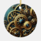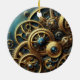 Ornamento De Cerâmica Estampunk Clockwork Dourado e Teal