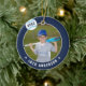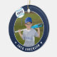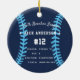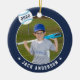 Comemore uma época incrível para seu jogador de beisebol favorito com este ornamento personalizado legal em uma marinho azul e azul claro. Personalize a frente com a foto, o nome e o ano do jogador e adicione mais detalhes no verso, incluindo o nome da equipe ou da liga, a estação, a idade, a posição e o nome do treinador.