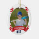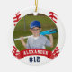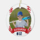 Comemore uma época incrível para seu jogador de beisebol favorito com este ornamento personalizado legal. Personalize a frente com a foto, o nome e o número de camisa do jogador em um plano de ilustração de baseball. Em seguida, adicione mais detalhes à parte traseira, incluindo o nome da equipe ou liga, estação, idade, posição e o nome do treinador.