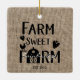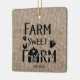 O Enfeites de natal Rustic Farmhouse Style mostra a tipografia do país lendo a FAZENDA da FAZENDA DOCE com corações, celeiros e um galo. Seu nome de família e ano em que sua fazenda (casa) foi estabelecida também são apresentados. O ornamento perfeito para recém-casados, família, aquecimento doméstico ou qualquer pessoa que ama o estilo de casa de fazenda.