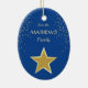 Dê-lhes algo bonito do estado excelente de Rhode Island! Na frente desse ornamento está uma silhueta de ouro brilhante do estado, com uma estrela de ouro mais escura imposta sobre ele. Acima do estado e da imagem de estrela está a mensagem de brilho MERRY CHRISTMAS no script, e um banner com o texto em azul RHODE ISLAND. À sua volta estão todos os flocos de neve dourados. As imagens e o texto são colocados sobre um fundo azul profundo. A parte de trás do ornamento tem campos de texto em dourado claro para você personalizar, e uma segunda imagem de estrela dourada. Você pode mudar a cor de fundo, se quiser, escolhendo PERSONALIZAR.