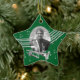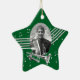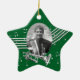 Ornamento de fotos de feriado em estrela de trompete em verde com notas de música prateada e ornamento de fotos para seu músico favorito. Personalize o texto no verso como preferido.
