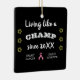 Vivendo como um campeão desde YYYY, cancer de peito orgulhoso sobrevivente | fita cor-de-rosa, estrelas amarelas brilhantes | texto totalmente personalizável para fundo escuro