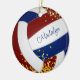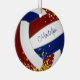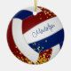 Este ornamento bonito de vôlei apresenta a imagem realista de um vôlei que tem painéis de marrom, azul e branco e uma aspersão de minúsculas estrelas de brilho dourado, sobre as quais você pode personalizar o nome do jogador na frente e no ano comemorativo no verso - por katz_d_zynes
