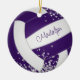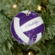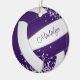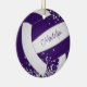 Esse adorno bonito de vôlei apresenta a imagem realista de um vôlei que tem painéis roxos e brancos e uma aspersão de minúsculas estrelas cintilantes prateadas, sobre as quais você pode personalizar o nome do jogador na frente e no ano comemorativo no verso - por katz_d_zynes