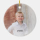 Este enfeite bonito e memorável fará o presente de Natal perfeito nesta época de Natal! O trabalho de arte é desenhado à mão em formato digital. Você pode alterar a foto e o ano na parte traseira do ornamento clicando no link 'Personalizar este modelo'. A foto que você coloca está pronta para preencher toda a área. Você pode alterar a cor de fundo do ornamento clicando no botão azul 'Editar Design'.