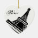 O coração customizável deu forma ao ornamento com ilustração preto e branco da torre Eiffel em Paris, France.