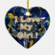 Ornamento De Cerâmica Eu Amo Minha Garota: Arte Abstrata Azul e Dourada
