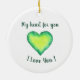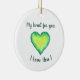 Ornamento De Cerâmica Eu amo você Cute Green e Blue Heart Aniversário
