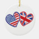 Ornamento De Cerâmica EUA e corações BRITÂNICOS da bandeira