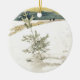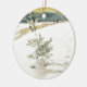 Pequeno pinheiro torto na neve com esqui de serra pessoas ao fundo. Aquarela é ligeiramente "áspera" quase como um estudo. Trabalho de arte do pintor sueco Carl Larsson.