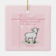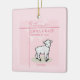 Um cordeiro doce está parado sobre um pedaço de grama com a palavra Batismo debaixo dele. Personalize este item de presente cor-de-rosa para o Batismo da sua neta excelente. Adicione o nome dela e a data em que ela foi batizada como uma bela manutenção!