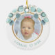 Este Enfeites de natal personalizado apresenta um moderno design botânico de folhagem de eucalipto com elementos falsos de ouro. Personalize a foto, o ano e o nome no verso. Este modelo funciona melhor com fotos de formato paisagem com o bebê no centro.