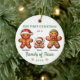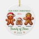 Família Gingerbird de Três Primeiros Ornamentos Cerâmicos de Natal para pais que acabaram de ter seu primeiro filho com pessoas de mães, pais e gengibres de bebês. Nosso primeiro Natal como uma família de três ornamentos personalizados de pão de gengibre. Celebre a alegria de uma família em crescimento com o nosso ornamento "Nosso Primeiro Natal como Família de 3" - um entusiasmo sincero para os novos pais apreciarem a sua primeira temporada de férias com a sua pequena. Este belo ornamento é cuidadosamente desenhado para capturar o calor e a maravilha de acolher uma primeira criança, personalizada com os nomes da família e o ano para uma peça verdadeiramente monótona. Feita para pendurar orgulhosamente na árvore, traz um toque de elegância e calor com detalhes festivos que certamente despertam memórias a cada temporada de festas. Este ornamento é o presente perfeito para novos pais, comemorando um momento que eles vão manter perto para sempre. Avós, amigos e familiares adorarão dar esta doce lembrança para celebrar um marco especial, trazendo sorrisos e alegria de férias aos novos pais orgulhosos que estão experimentando a magia dos feriados de uma forma totalmente nova.