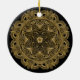 Lindo enfeite de árvore de Natal de dezembro com espaço para personalizar ou personalizar com o nome da sua família em uma fonte elegante, foto pessoal e data do ano de sua escolha. E um belo padrão de floco de neve mandala dourada falsa e decoração de fundo preto chic. Lembrança de memórias únicas que os avós de seus filhos, outros membros da família ou seus amigos vão amar!