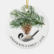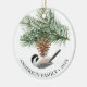 This special family photo keepsake Christmas ornament features a cute little chickadee perched on a pine cone on the front, with the family name and year, and a photo on the back. Easily customize the templates with your own text and photo.