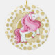Ornamento De Cerâmica Fantasia Dourada Rosa Unicorn