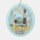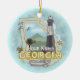 Ornamento de Farol Georgia por ArtMuvz Illustration. Farol de aquarela igual a camisa, roupa, roupa náutica, roupa de colecionador de farol. Dons de farol são uma forma excelente de mostrar a alguém que você se importa, especialmente se eles amam o oceano, a costa, ou os próprios faróis. Faróis são símbolos icônicos de esperança, orientação e segurança, e eles podem fazer um belo e significativo presente para qualquer ocasião. Não importa qual seja o seu orçamento, há certamente um presente de farol perfeito para a pessoa que você tem em mente. Para personalizar, adicione seu nome ou adicione texto. Personalize este ornamento de Farol Georgia para torná-lo exclusivo seu ou para dar como presente personalizado