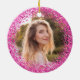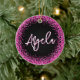 Create your own girly glam Christmas ornament featuring the background color of your choice and a round faux bright hot pink glitter border.