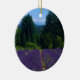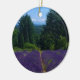 Um belo dia de verão em julho de 2016 em uma fazenda de lavanda em Hillsboro, Oregon. Em um dia muito claro, você pode ver o Monte Hood entre as árvores, mas esse dia tinha algumas nuvens bloqueando a vista. As filas de lavanda eram brilhantes e cheirosas!