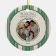 Envie cartões de natal com este Fazer Spiry Bright Dois Ornament Cerâmico de Feriado de Fenda Fotográfica! Este design apresenta um plano de fundo de faixa verde simples com uma opção de foto colorida na parte frontal e uma opção de foto em preto e branco na parte traseira. Personalize com o nome da sua família e a saudação pessoal da temporada. Tem uma solicitação personalizada? Me mande mensagem!