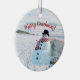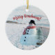 Ornamento De Cerâmica Feliz Beachmas Snowy Sandy Snowman -