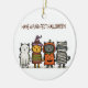 Quatro gatos engraçados em fantasias de Halloween, um fantasma, bruxa, abóbora e múmia- para um ornamento festivo desejando ao receptor um Halloween perfeito. Excelente para amantes de gatos.