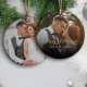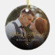 Este ornamento personalizado de fotos "Feliz e casado" é uma forma romântica de recém-casados celebrarem juntos o seu primeiro Natal como casal casado. Este elegante design de ornamento de dois lados apresenta a frase "Feliz & casado" em um roteiro dourado, aliado aos nomes do casal e ao ano personalizável abaixo de uma foto para um toque eterno e sofisticado. O outro lado mostra uma foto de cheio do casal, transformando esse ornamento em uma decoração de feriado e uma marca que captura um dos marcos mais significativos da vida. A rica inscrição em ouro contra o casamento ou a foto de noivado escolhida pelo casal cria um olhar luxuoso, mas moderno, que se ajustado perfeitamente com a decoração clássica e contemporânea da árvore de Natal. Perfeito como presente para casais recém-casados ou como adição valiosa às suas próprias tradições de feriado, este ornamento preserva lindamente as memórias de casamento enquanto marca a alegria de sua primeira temporada de festas como marido e esposa. Um ornamento personalizado como este torna-se não apenas uma decoração, mas um lembrete duradouro de amor, compromisso e a magia do casamento durante as férias.