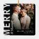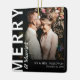 Feliz e Enfeites de natal de fotos casado. A design apresenta um esquema tipográfico moderno, os nomes dos recém-casados e a data do casamento.