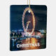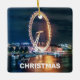 "Feliz Natal" Blue e Dourado ornamento Cerâmico de Londres, com uma foto do Olho de Londres à noite. Perfeito para amantes de Londres.