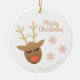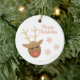 Ornamento De Cerâmica Feliz Natal, Bonita Reindeer Rosa Dourada