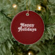 "Felizes Feriados", ornamento cerâmico branco de marrom burgundy