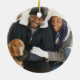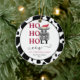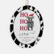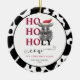Sagrada e Engraçada Vaca, Padrões de Natal, ornamento cerâmico. Um design com um tema de fazenda fofo com uma vaca vestindo um chapéu de Papai Noel alegre e dizendo "ho vaca sagrada é Natal de novo" em um padrão preto e branco. Adicione sua própria foto festiva ao fundo do ornamento e faça-a exclusivamente sua. Ele também faz um presente excelente e guarda-costas para a sua família e amigos.