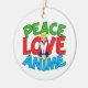 Um belo presente de Enfeites de natal de manga para alguém que ama animação japonesa. Anime do Amor pela Paz em verde, vermelho e azul com uma linda estudante loira em uma roupa de marinheiro azul.