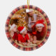 Ornamento De Cerâmica Feliz Natal Família Foto Azul Xadrez Vermelha