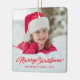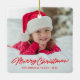 Este Enfeites de natal com fotos apresenta um belo roteiro "Feliz Natal" em vermelho e texto personalizado. Compartilhe uma memória favorita do ano com este ornamento de fotos personalizado que apresenta a mesma imagem na frente e no verso. O texto vermelho simples é festivo e clássico. Este ornamento faz um presente ou guardião de feriado excelente e faz parte da coleção de Felizes e Maravilhas de Lea Delaveris Design, onde você pode encontrar cartões de natal coordenadores, etiquetas de presentes e muito mais.