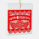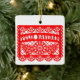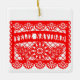 Este Enfeites de natal apresenta um papel picado vermelho em cartaz mexicano com a frase Feliz Navidad na frente em branco brilhante. O verso tem um lugar para personalizar com um nome de família e o ano em uma fonte vermelha de serifa de laboratório.
