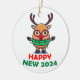 Ornamento De Cerâmica Feliz Nova Reindeer 2024